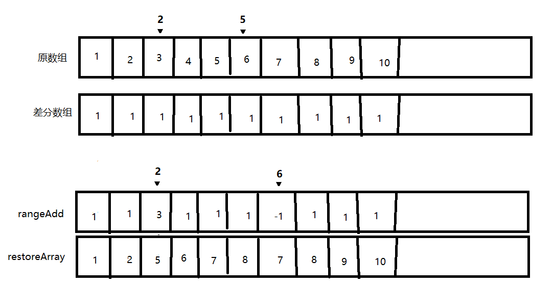 通过差分数组,可以快速对数组某个区间进行增减操作: