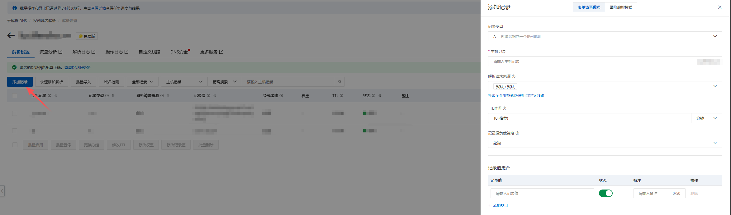 - 添加A记录,将两个域名都解析到服务器IP