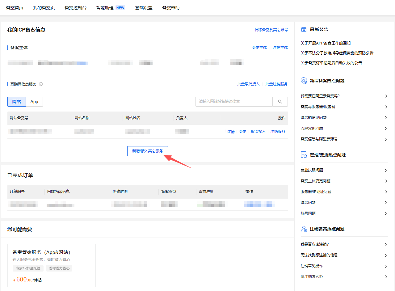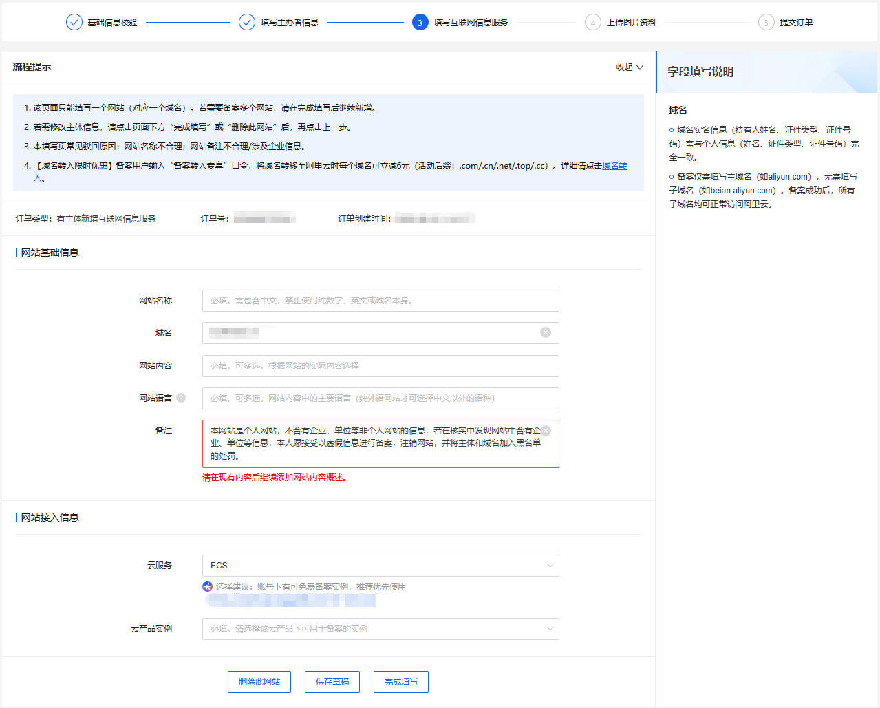 新增备案 - 填写基础信息(域名)