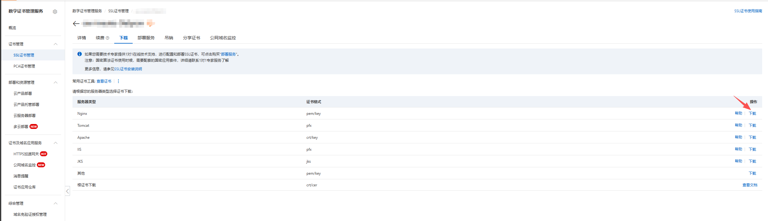 创建ssl证书 - 选择证书,点击更多,点击下载