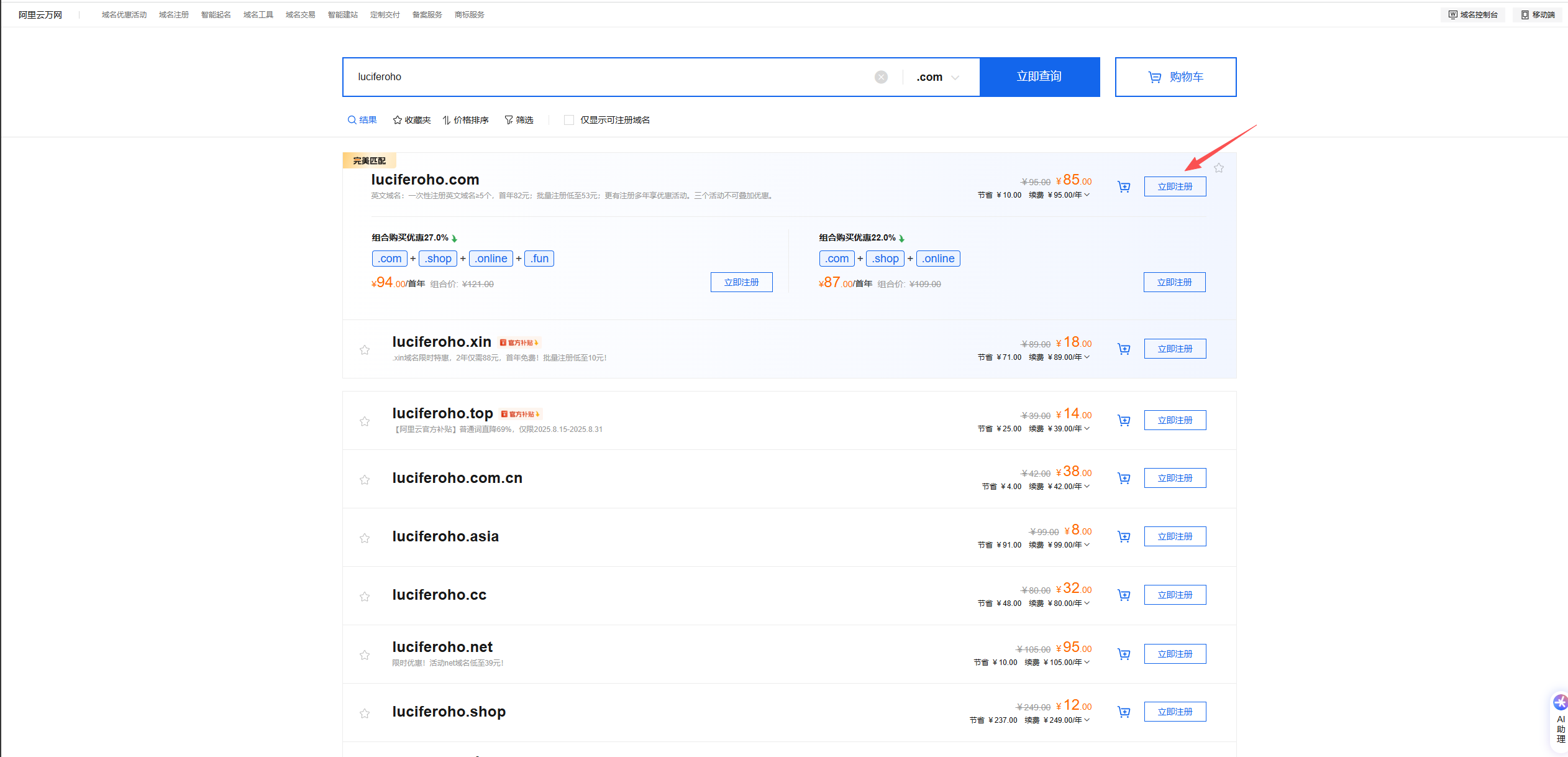 - 输入域名关键字,查询域名